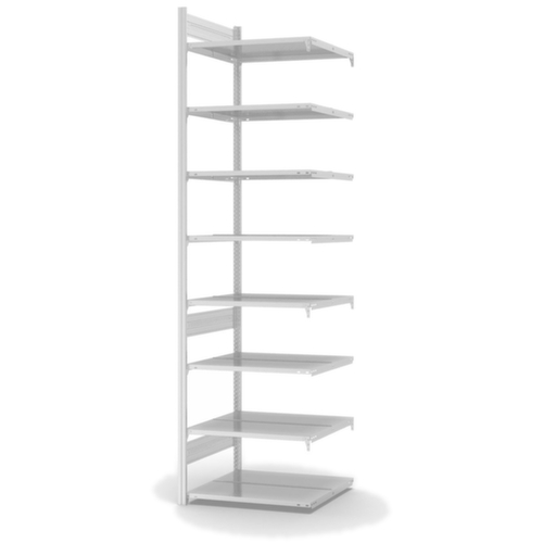 hofe Akten-Steckregal Anbaufeld zur beidseitigen Nutzung, 8 Böden, RAL7035 Lichtgrau