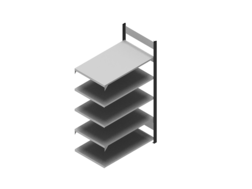 Anbauregal mit 1 Ständerrahmen, Aussteifungstraversen und Ebenen gem. Angebot