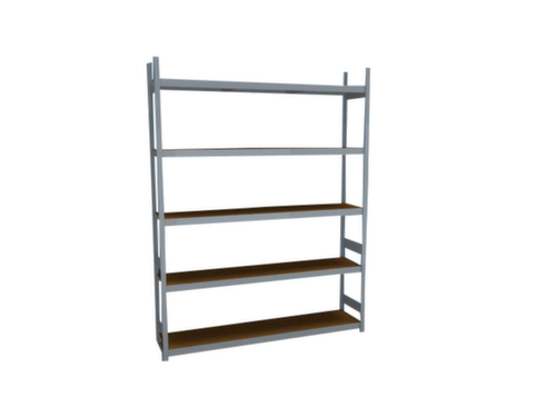 "metaDescription": "hofe Weitspannregal mit Holzböden - Anbaufeld, HxBxT 3000x2270x535mm, Fachl. 350kg, 5xHolzboden, einseitig, Ständer verzinkt, Traversen verzinkt",