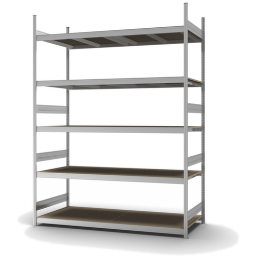 "metaDescription": "hofe Weitspannregal mit Holzböden - Anbaufeld, HxBxT 3000x2520x835mm, Fachl. 350kg, 5xHolzboden, einseitig, Ständer verzinkt, Traversen verzinkt",