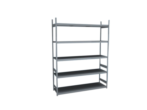 Die wichtigsten Maße des hofe Weitspannregals auf einen Blick:5 Ebene(n) mit Stahlboden. Fachhöhen je nach Einsatzzweck und Ihrem Bedarf im Raster von 25 mm verstellbar. Nutzung beidseitig - flexible Aufstellung frei im Raum möglich. Durch gesickte Tiefen-Verbindungsblechen und Stahl-Fußplatten ist das Regal besonders standfest. Obere Profilabdeckkappen sorgen für einen sauberen Abschluss. Konstruktion aus Stahl, Ständer mit korrosionsschützender Zinkbeschichtung, Ebenen mit korrosionsschützender Zinkbeschichtung,