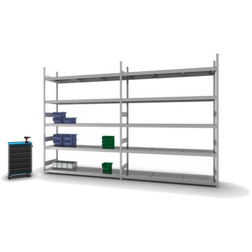 "metaDescription": "hofe Weitspannregal mit Stahlböden - Anbaufeld, HxBxT 3000x1520x635mm, Fachl. 350kg, 5xStahlboden, beidseitig, Ständer verzinkt, Ebenen verzinkt",