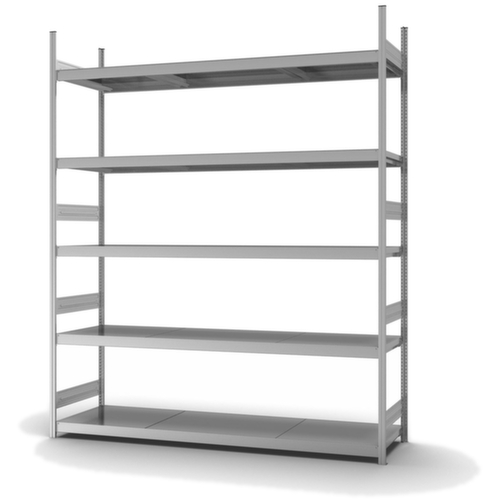 "metaDescription": "hofe Weitspannregal mit Stahlböden - Anbaufeld, HxBxT 3000x2270x635mm, Fachl. 350kg, 5xStahlboden, beidseitig, Ständer verzinkt, Ebenen verzinkt",