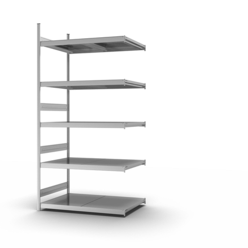 "metaDescription": "hofe Weitspannregal mit Stahlböden - Anbaufeld, HxBxT 3000x2020x835mm, Fachl. 350kg, 5xStahlboden, beidseitig, Ständer verzinkt, Ebenen verzinkt",