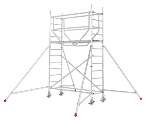 "longDescription": "<h2>Fahrgerüst ADVANCED SAFE-T</h2><strong>dank modularem Aufbau variabel einsetzbar</strong><br><ul><li><strong>Schneller Aufbau</strong> durch praktische Klickverschlüsse an Streben und Diagonalen- <strong>Sicher arbeiten auch im Außenbereich</strong> - Bühne mit rutschhemmendem und wetterfestem Belag</li><li><strong>Bequemer Ein- und Ausstieg</strong> über Durchgangsluke</li><li><strong>Maximale Sicherheit</strong> durch umlaufendes Geländer</li><li><strong>Sicherer Stand</strong> durch Ausleger</li><li><strong>Leicht und robust</strong> - geschweißte Rohrkonstruktion aus Aluminium</li><li>Bühne belastbar bis 200 kg</li></ul><strong>Sie haben die Wahl:</strong><br><ul><li><strong>Mobil einsetzbar auch bei Bodenunebenheiten</strong> - zusammengestellte Module mit 4 höhenverstellbaren Lenkrollen- <strong>Noch mehr Standsicherheit</strong> - ab 9,25 m Reichhöhe mit teleskopierbaren Auslegern mit Bajonett-Verschluss</li></ul>",