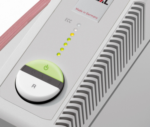 Schaltelement EASY_SWITCH mit Bedienerführung durch Farbsignale, automatischer Rücklauf mit automatischer Abschaltung verhindert Papierstaus, Abschaltautomatik bei vollem Auffangbehälter, elektronische Türsicherung über Magnetschalter
