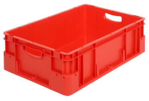 Maßlich auf die Europalette abgestimmt. Aus bruchsicherem Polypropylen in rot. Wände geschlossen, Boden geschlossen. Boden mit Verstärkung durch Verstärkungsrippen. Einfacher Transport durch Tragegriffe. Mit Etikettenhalter zur individuellen und klaren Beschriftung. Einfach zu stapeln mit Stapelrand sicher Mehrfach stapelbar. Lebensmittelgeeignet. Für Rollenbahnen geeignet. Temperaturbeständig -40 °C bis +90 °C. Geeignet für verschiedene Stoffe, bitte anfragen.