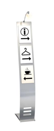 "longDescription": "<h2>Infoständer</h2><strong>Wegweiser und Plakathalter in Einem</strong><br><ul><li><strong>Sofort einsatzbereit</strong> - vorbereitet zum Befestigen von Prospektfächern und Plakattaschen</li><li><strong>Stabil und kratzfest</strong> - Gestell aus Stahl mit Pulverbeschichtung</li><li><strong>Standfest</strong> durch Standfuß aus Stahl</li></ul><br><strong>Sie haben die Wahl:</strong><br><ul><li><strong>Mehr oder weniger Platz</strong> - wahlweise als ein- oder beidseitige Ausführung</li></ul><br>Die Info-Säule kann als Wegweiser, Plakathalter für Firmeninformationen und Willkommensgrüße und als Prospekthalter genutzt werden. Durch die beidseitige Nutzung kann die Säule auch mitten im Raum aufgestellt werden und bietet mehr Platz für Ihre Aushänge. Die stabile Stahlkonstruktion ist absolut standfest und durch die Pulverbeschichtung bleibt die Oberfläche geschützt.<br><br>Die Prospektfächer können einfach in die Metallfläche gesteckt werden, in die kleine, fast unsichtbare Löcher gestanzt sind. Die Plakattaschen aus Kunststoff in Kristallglas-Optik haften mittels beigefügten Magnetleisten. So können Sie die Info-Säule individuell gestalten und die Aufteilung jederzeit ganz einfach ändern.<br><br><strong>Gut zu wissen!</strong><br><br>Lieferung erfolgt ohne Prospektfächer und Plakattaschen. Bestellen Sie diese doch gleich mit!<br>",