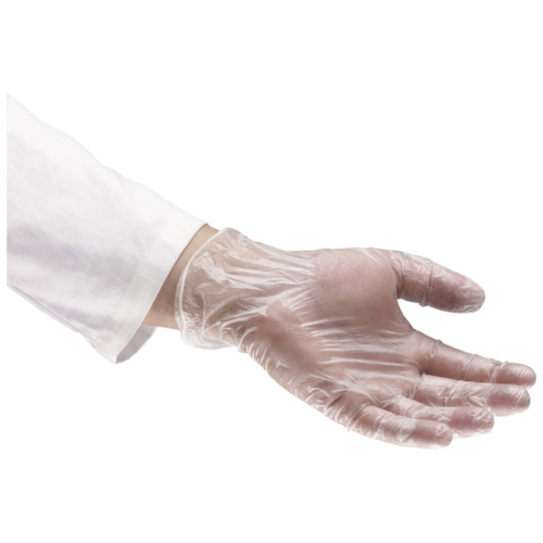 "metaDescription": "Innen gepuderte Einweghandschuhe Eco aus Vinyl - Vinyl, transparent, gepudert, Größe 6 - 7, L 240mm",