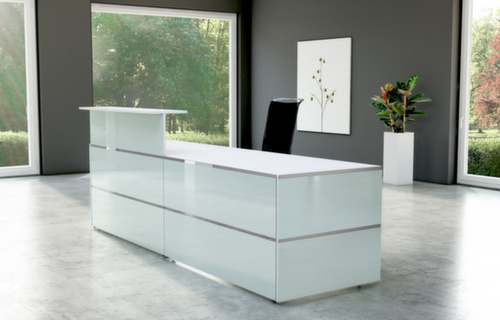 "metaDescription": "Kerkmann Gerade Anbautheke Atlantis - HxBxT 1080x1350x1015mm, Platte weiß, Front weiß, Front Glas",