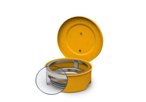 "metaDescription": "Kleinteilereiniger FALCON - Stahl lackiert, 2l, HxØ 102x264mm, Flammsperre, m. Eintauchsieb, gelb",