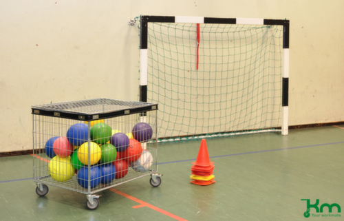 Gestell elektrolytisch verzinkt. Stahlkonstruktion. Leicht zu manövrieren und verfahren durch 4 Lenkrollen. Rad Ø 100 mm. Mit pannensicherer Polyurethan-Bereifung. Naben mit Schwenklager mit zweifachem Kugel-Drehkranz. Dadurch wird eine 360°-Drehung ermöglicht. Feststeller an zwei Lenkrollen gewähren bei Bedarf stets einen sicheren Stand.
