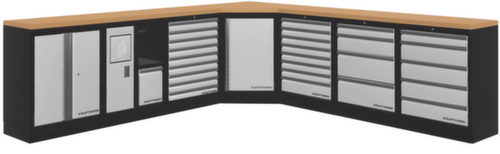 "longDescription": "MOBILIO, hochwertige und moderne Werkstattmöbel-Serie im praktischen Baukastensystem. Wählen Sie aus einer Vielzahl vorkonfigurierten Modulen und stellen Sie sich Ihre Betriebseinrichtung einfach und unkompliziert selbst zusammen. Wir unterstützen Sie gerne bei der Planung. <br>8-Element-Werkstatt-Schrankwand 5 Oberschränke mit Rolladen <br>1 Eck-Oberschrank mit Gasfederung <br>1 Hochschrank mit 4 Tablaren <br>1 Hochschrank, 2-türig mit 4 Tablaren <br>1 Schrankmöbel, 2-türig mit 1 Tablar <br>1 Eck-Schrankmöbel mit 1 Türe <br>1 Schubladenschrank mit 8 Schubladen<br>1 Schubladenschrank mit 4 Schubladen <br>1 Roll-Schubladenschrank mit 7 Schubladen <br>1 Unterschrank mit Abfalleimer/Papierhalter <br>4 Werkzeug-Lochwände <br>2 Werkzeug-Lochwände zu 3964-16 <br>1 Multiplex-Arbeitsplatte (3964-09) <br>1 Multiplex-Arbeitsplatte zu 3964-16 (3964-16-99) <br>1 mit rostfreier Arbeitsplatte (3964-18)<br>",