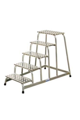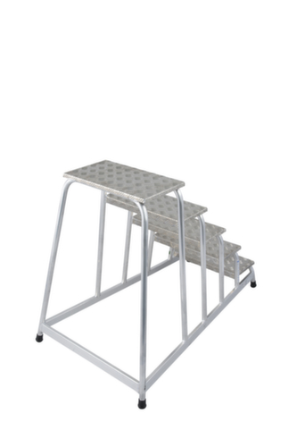 Aus Aluminium. Die Stufen-Holm-Verbindung ist verschweißt. Rutschhemmende Fußkappen am Holmende.