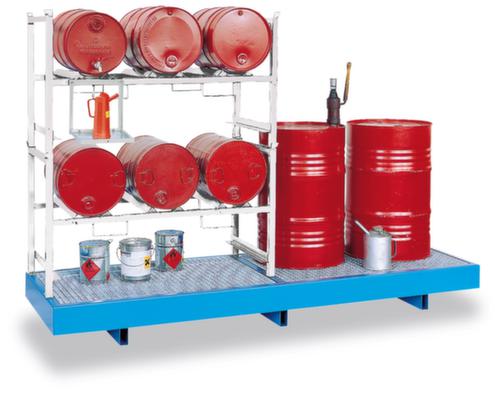 "longDescription": "<h2>Abfüllregal und Stapelgestell</h2><strong>sofort einsatzfähige Angebote</strong><br><ul><li>Geeignet für wassergefährdende und brennbare Stoffe</li><li><strong>Korrosionsgeschützt und stabil</strong> - Gestell aus verzinktem Stahl</li><li><strong>Einfacher Transport</strong> - ab 1390 mm Breite mit Staplereinfahrtaschen</li></ul><br><strong>Sie haben die Wahl:</strong><br><ul><li><strong>Praktische Komplett-Angebote oder individuelle Einzel-Angebote</strong> - mit fest aufgeschweißten Fassauflagen oder Gitterrostböden</li><li><strong>Passende Wannen</strong> - wahlweise als Einschub-, Stand- oder Kombi-Standwanne</li></ul><br><strong>Standwanne</strong><br><ul><li><strong>Volles Auffangvolumen nutzbar</strong> - mit herausnehmbarem und feuerverzinktem Gitterrost</li><li><strong>Sicherer Stand</strong> - Gitterrost mit Kantung, auf der das Stapelregal aufgeschraubt wird</li><li><strong>Für den Staplertransport geeignet</strong> durch praktische Unterfahrhöhe</li></ul><br><strong>Bestimmungen!</strong><br><br>Bauweise der Wannen behördlich zugelassen. Einsatz für gewässergefährdende, entzündbare (Flammpunkt > 55°C) und aggressive Stoffe zur Lagerung unter Dach.<br>",
