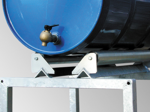 "description": "mit Winkel- oder Rollen-Fassauflage, Stahl, verzinkt",