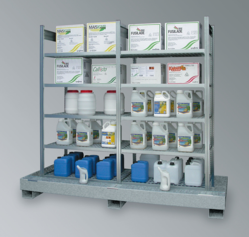 Zur vorschriftsgemäßen Kleingebindelagerung wassergefährdende und brennbare Stoffe unter Dach. Stecksystem - zur einfachen und werkzeuglosen Montage.