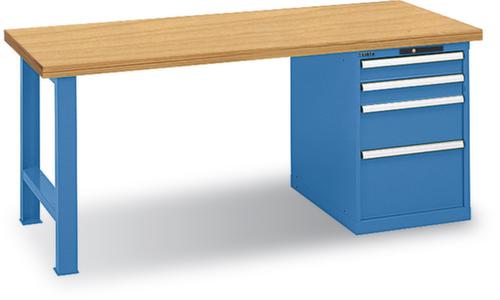 "description": "HxBxT 850x2000x800mm, Bucheplatte, Tragl. 360kg, 2 Füße/1 Container, Ausstattung: 4 Schubladen, Code Lock",