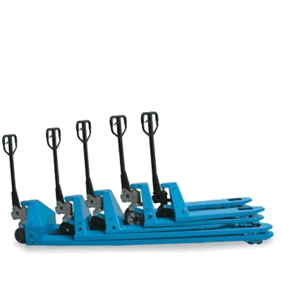 Bei uns finden Sie Palettenhubwagen mit einer Traglast von bis zu 5.000 kg und unterschiedlichen Gabellängen von 0,45 Meter bis hin zu 2,5 Meter im Sortiment.