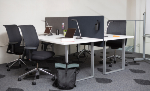 Die wichtigsten Maße des LUXOR Akustik Absorbers RECLAIM auf einen Blick:Aufstellung: Zur Befestigung am Tisch über Klammern. Wand aus aus zu 100% recycelten PET-Materialien, wobei der Kern aus 60% und die Stoffoberfläche zu 100% aus wiederverwendeten Materialien nach Gebrauch stammen, in schiefergrau. Oberfläche pinnbar. Trennwand drehbar, sodass eine Aufhängung unter der Schreibtischplatte ermöglicht wird. Dies erlaubt eine Umfunktionierung zur Sichtblende um beispielsweise Kabel zu verdecken und sorgt für zusätzliche Privatsphäre durch Versperrung des Blicks auf die Beine. Schallabsorbierend - für eine verbesserte Raumakustik. Rückseite mit 3 vorgebohrten Montageöffnungen zur individuellen Anpassung der Sichtschutzhöhe.