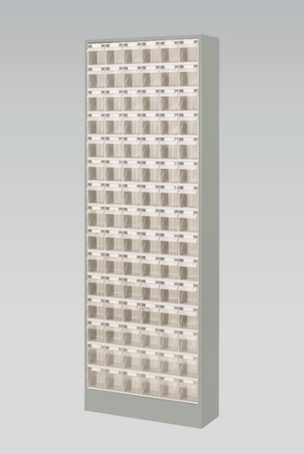 "metaDescription": "Magazinschrank mit Klappkästen, 90 Kästen, transparent - HxBxT 1820x634x200mm, 90 Kästen, Gehäuse lackiert",