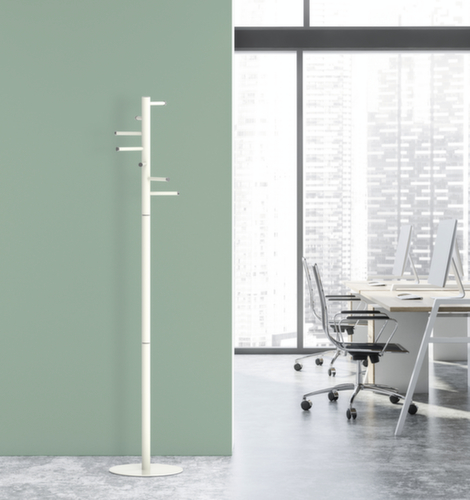 "metaDescription": "MAUL Garderobenständer MAULcaurus, mit 7 Haken, RAL9003 Signalweiß - HxØ 1770x350mm, 7 Haken, Metall, RAL9003",
