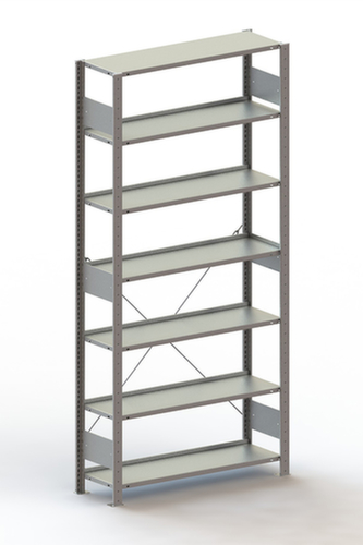 Für Ihre Sicherheit: nach DIN EN 15635 müssen Fachbodenregale ab einer 4-fachen Höhe zur Regaltiefe (Verhältnis 4:1) am Boden befestigt und gesichert werden. Die angegebenen Fachlasten gelten bei gleichmäßiger Lastverteilung. Zusätzliche Böden/Ebenen sind als Zubehör erhältlich und bis zur max. Feldlast erweiterbar.