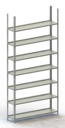 Die wichtigsten Maße des META Lagerregals auf einen Blick:7 Ebene(n) mit Stahlboden. Ebenen mit Anschlagkante gegen das Herausfallen von Ware und Sicherheitskantung zum Schutz vor Verletzungen. Nutzung einseitig - zur Aufstellung an der Wand konzipiert. Hohe Stabilität in Längs- und Tiefenrichtung. Konstruktion aus Stahl, Ständer mit korrosionsschützender Zinkbeschichtung, Ebenen mit korrosionsschützender Zinkbeschichtung.