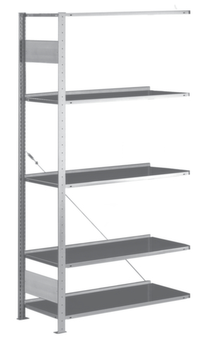 Anbauregal mit 1 Ständerrahmen, Diagonalverstrebungen und Ebenen gem. Angebot
