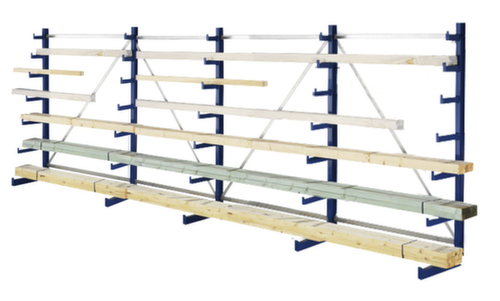 Die wichtigsten Maße des META Kragarmregals Atlas ST auf einen Blick:Nutzung einseitig - zur Aufstellung an der Wand konzipiert. 7 Lagerebenen. 6 Ebene(n) mit Kragarm, mit Abrollsicherung. Traglast je Arm 150 kg. Verschieden lange Arme in konischer Form, gerade ausgerichtet. Nutztiefe 150 mm. Konstruktion aus Stahl. Ständer sandgestrahlt mit Pulverbeschichtung in RAL5010 Enzianblau. Kragarme sandgestrahlt mit Pulverbeschichtung in RAL5010 Enzianblau.