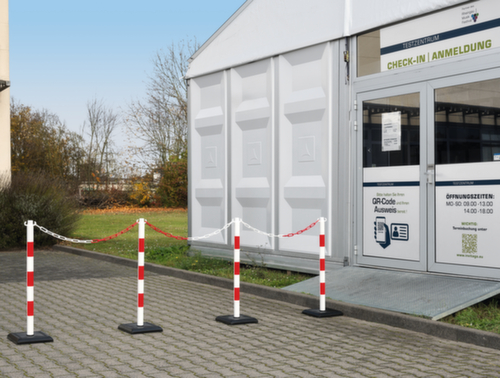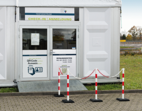 Die wichtigsten MaĂe des Moravia Absperrsystems GUARDA Plus auf einen Blick:FuĂ viereckig, mit Beton gefĂŒllt. Pfosten aus Kunststoff in rot/weiĂ. in rot/weiss.