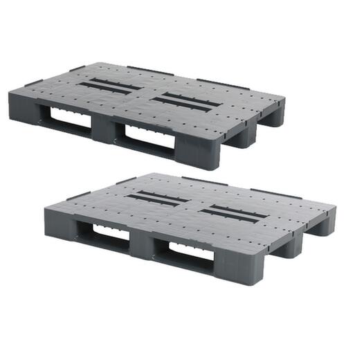 "description": "Recycling-Kunststoff, HxLxB 145x1200x1000mm, Tragl. stat. 5000kg, 3 Kufen, Oberdeck durchbrochen, Sicherungsrand",