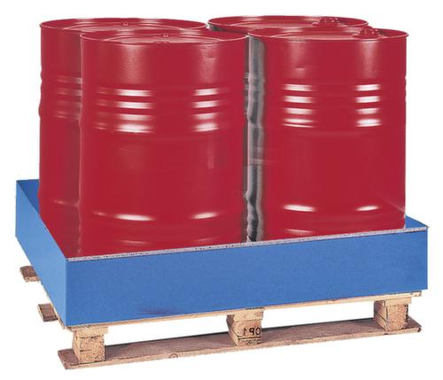 "longDescription": "<h2>Paletten-Aufsatzwanne</h2><ul><li>Zur Aufstellung auf Euro- oder Chemiepaletten</li><li>Aus Stahlblech, 3 mm stark, feuerverzinkt oder mit Lackierung in himmelblau RAL 5015</li></ul>",