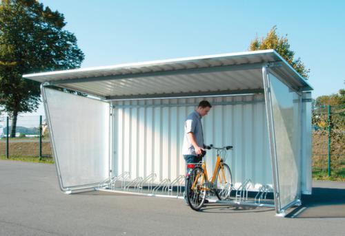 "description": "f. Fahrradüberdachung, Anbau links, Wand Trapezblech verzinkt/pulverbeschichtet, RAL9002, Aufpreis",