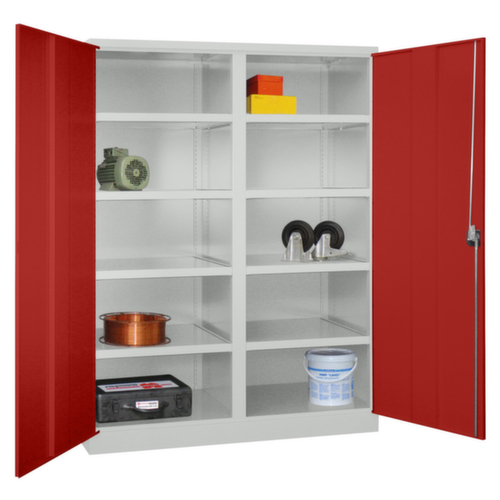 Durch seine besonders robuste Konstruktion ist der strapazierfähige Industrieschrank für den anspruchsvollen und täglichen Gebrauch bestens gewappnet. Mit seiner hohen Gesamttraglast bietet er sicheren und geordneten Stauraum für schwere Güter, Arbeitsmittel und Werkzeuge in Industriebetrieben, Werkstätten und Lagern.