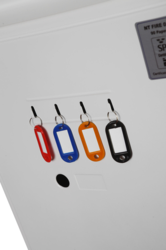 Höhenverstellbarer Boden, abschließbare Schublade und Schlüsselhaken. Mit Flügeltür. Verschließbar mit elektronischem Hochsicherheitsschloss mit klarer LED-Anzeige, Doppelsteuerung und Codes. Mit automatischer Schnellverriegelung. Konstruktion aus Stahl. Korpus mit Lackierung in RAL9003 Signalweiß. Front mit Lackierung in RAL9003 Signalweiß.