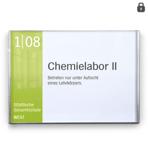 "metaDescription": "Türschild - HxBxT 105x150x7mm, Schild Acrylglas, Rahmen Edelstahl",