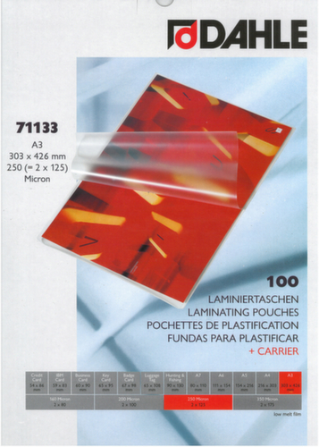 "metaDescription": "Folientaschen 125 mµ stark - f. Laminiergerät, f. DIN A3,125 µm",