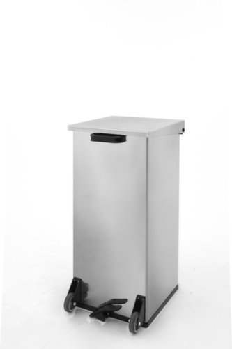 Die wichtigsten Maße des Abfallbehälters Carro Kick auf einen Blick:Zum Aufstellen auf dem Boden. Behälter feuerfest. Mit Klappdeckel - die Öffnung erfolgt rückenschonend mit Fußpedal. Schließt gedämpft für eine ruhige Arbeitsatmosphäre. Einfache Entleerung über Deckel. Korpus aus Edelstahl. Deckel aus Edelstahl. Um den Behälter mobil einsetzen zu können, ist er mit 2 Rollen ausgestattet.