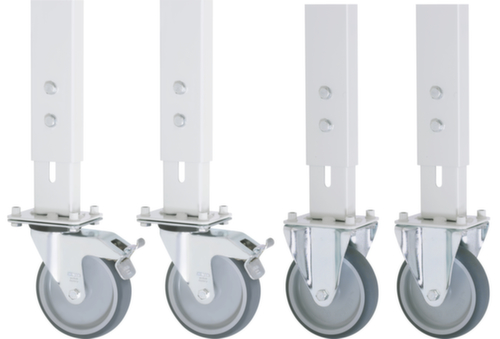 "longDescription": "<h2>Rollensatz</h2><strong>spurlos und bodenschonend</strong><br><ul><li>Geringer Anfahrwiderstand - Rad mit thermoplastischer Gummi-Bereifung</li><li>Radkörper aus Polypropylen</li><li>Sichere Ausstattung - Lenkrollen mit Feststeller</li></ul>",