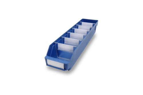 Aus bruchsicherem Polypropylen, in blau. Seitliche Nutenführungen und Bodenfixierungen ermöglichen das Einstecken von Querteilern und erlauben somit eine individuelle Kasten-Unterteilung. Sichtöffnung. Mit Etikettierfläche. Temperaturbeständig von -20 °C bis +80 °C. Material Lebensmittelgeeignet.