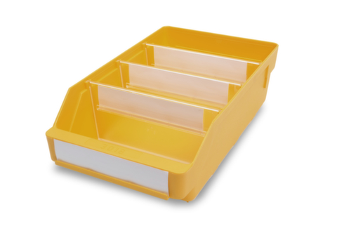 Aus bruchsicherem Polypropylen, in gelb. Seitliche Nutenführungen und Bodenfixierungen ermöglichen das Einstecken von Querteilern und erlauben somit eine individuelle Kasten-Unterteilung. Sichtöffnung. Mit Etikettierfläche. Temperaturbeständig von -20 °C bis +80 °C. Material Lebensmittelgeeignet.