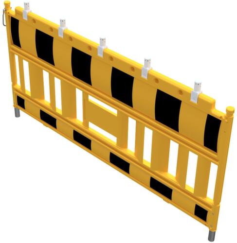 "longDescription": "<h2>Euro1-Schrankenzaun</h2><strong>zum schnellen, zeitweisen Absperren</strong><br><ul><li><strong>Hohe Signalwirkung</strong> - mit Reflexfolie Typ 1</li><li><strong>Einfaches Verbinden mehrerer Zäune</strong> durch einseitig anmontierte Öse</li><li><strong>Langlebig und robust</strong> - aus UV-beständigem und schlagzähem Kunststoff</li></ul><br><strong>Direkt mitbestellen:</strong><br><ul><li><strong>Fester Stand</strong> mit Fußplatten</li></ul><br><strong>Sie haben die Wahl:</strong><br><ul><li><strong>Noch besserer Signalwirkung</strong> - wahlweise mit Lampenadapter</li></ul>",