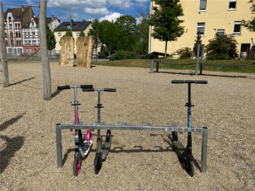 "metaDescription": "Schake Scooterparker - L 1515mm, 5 Einstellplätze, Nutzung einseitig, Stahl feuerverzinkt, m. Halteringen",