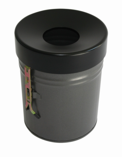 "metaDescription": "Selbstlöschender Abfallbehälter FIRE EX zur Wandbefestigung, 30 l, graphit, Kopfteil schwarz - selbstlöschend, 30l, HxØ 415x344mm, Wandmontage, Kopfteil schwarz, Korpus Stahl graphit",