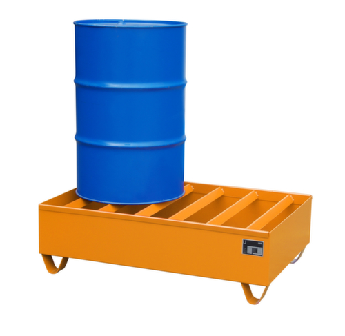 "metaDescription": "Stapelbare Auffangwanne mit Profilrost - f. 2x200l Fass, Auffangvol. 224l, HxBxT 360x1200x800mm, Stahl, RAL2000",