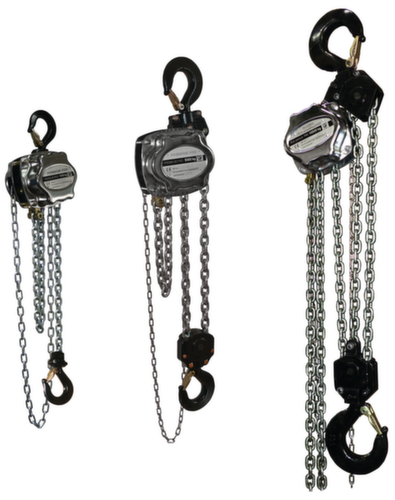 "longDescription": "<h2>Stirnrad-Flaschenzug</h2><strong>einfache Handhabung von schweren Lasten</strong><br><ul><li><strong>Absolut langlebig und widerstandsfähig</strong></li><li><strong>Höchste Mobilität und leichte Handhabung</strong> durch sehr geringes Eigengewicht</li><li><strong>Sicherer Halt der Last in jeder Position</strong> - mit asbestfreier Scheibenbremse mit zwei Sperrklinken</li><li><strong>Gesicherte Nutzung</strong> - mit serienmäßiger Überlastsicherung</li><li><strong>Leichter Einzug einer längeren Kette</strong> - Kettenaufhängung leicht zugänglich</li><li><strong>Robust und korrosionsgeschützt</strong> - drehbare Ober- und Unterhaken aus Vergütungsstahl, Hakensicherung gegossen, verzinkt und federbelastet</li></ul><br>Der Stirnrad-Flaschenzug der Serie Permium PRO ist nach dem neusten Stand der Technik gefertigt und konsequent weiterentwickelt. Höchste Qualität und beste Ergonomie garantieren eine einfache und sichere Nutzung. Außerdem bietet der Flaschenzug höchste Mobilität durch das sehr geringe Eigengewicht und die kompakten Abmessungen.<br><br>Die komplette KOnstruktion ist galvanisiert und chromatiert und ist somit besonders stark vor Korrosion und Verschleiß geschützt.<br>Aufgrund der außerordentlich hohen Widerstandsfähigkeit und dem sehr niedrigen Reibungswiderstand hat der Stirnrad-Flaschenzug eine besonders lange Lebensdauer. <br>",