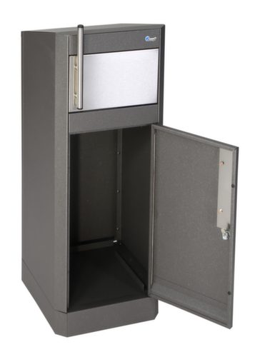 Die wichtigsten Maße des stumpf Abfallbehälters Binox Hybrid-25 auf einen Blick:Behälter nicht brennbar gem. DIN 4102, Brandschutzklasse A1. Mit Einwurfklappe - die Öffnung erfolgt manuell. Die Soft-Closefunktion reduziert nicht nur Geräusche, sondern schont auch die Mechanik des Deckels. Deckel mit gedämpfter Hygiene-Einwurfklappe aus Edelstahl. Innenbehälter aus Stahl mit korrosionsschützender Zinkbeschichtung. Ausgestattet mit auswechselbaren Farbstreifen zur Kennzeichnung des Abfalls. Einfache Entleerung über herausnehmbare Behälter. Verschließbar mit Dreikantschloss. Korpus aus Qualitätsstahlblech mit korrosionsschützender Zinkbeschichtung in eisenglimmer. Deckel aus Edelstahl in silber.