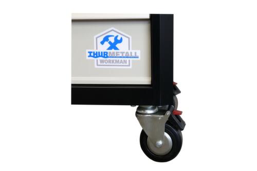 Mit 6 Schubladen bietet der Werkzeugwagen ausreichend Stauraum, um Ihr Werkzeug immer ordentlich und direkt erreichbar aufzubewahren. Auszugsperre. Mithilfe der Sperre wird das unbeabsichtigte komplette Herausziehen aller Schubladen verhindert. Verschließbar mit Zentralverschluss.
