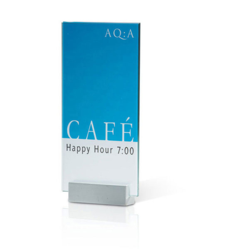 "metaDescription": "Tischaufsteller - HxBxT 220x105x24mm, Schild ESG, Ständer Alu",